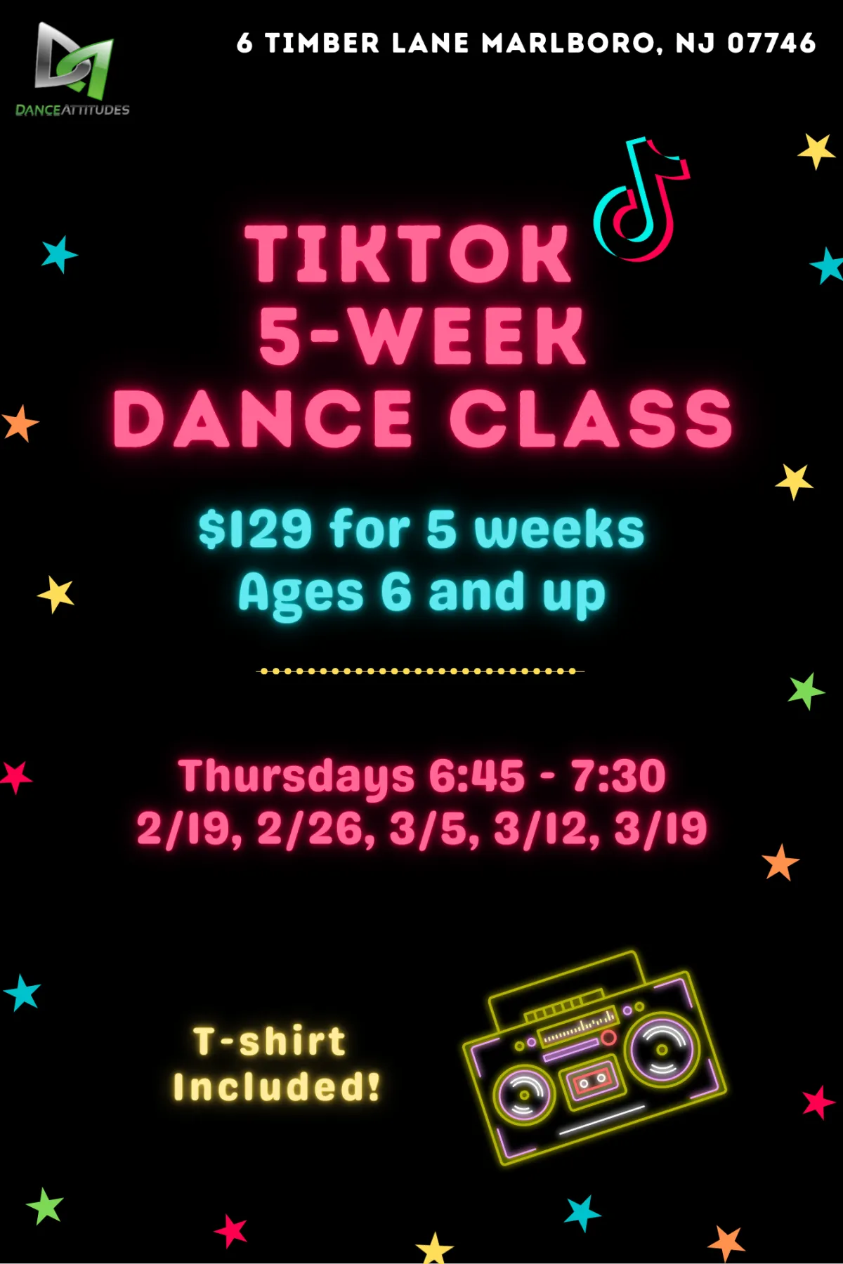 Our TikTok-Inspired 5-Week Dance Class is perfect for dancers ages 6+ who love fun, trendy choreography in a positive, age-appropriate setting.